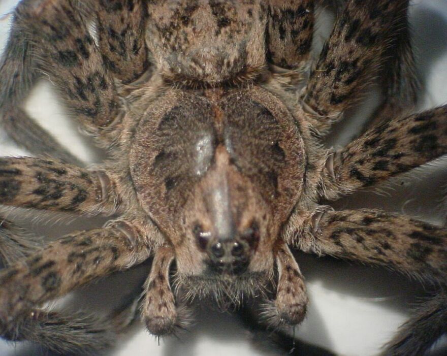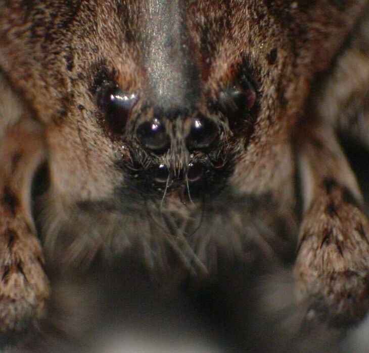 Spider closeup showing the eyes in 2 rows with 4 eyes per row