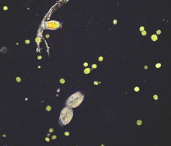 So far, I've divided my pictures into only a few categories. The pictures found here either don't fit those categories or I don't realize that they do. Since I am a beginner at microscopy, identifications of the various items I come across should be regarded as tentative and checked against other sources. The pictures are available by clicking on the descriptions, this to minimize bandwidth for those who arrive here by accident.