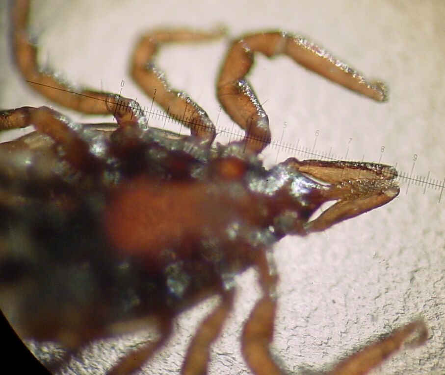 Male from above pair, length is about 2.3mm. Note the short, round palps similar to a dog tick