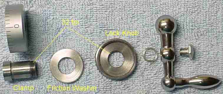 The locks described by Mr. Thomas are more elaborate than those I implemented. In particular, his friction washer was keyed to the shaft but I found that this wasn't absolutely necessary. My dial lock parts are simple, where the friction washer could be keyed to the shaft easily by drilling a small hole in the clamp and inserting a short pin then filing a slot in the friction washer to engage this pin. Try it without the pin and if needed add it later -- I originally planned to do this but found it worked fine without a pin.